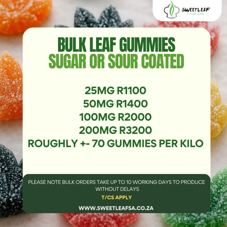 Sweet Leaf South AfricaIs first and foremost a wholesale company we supply grow stores, coffee shops and outlets that are cannabis friendly.